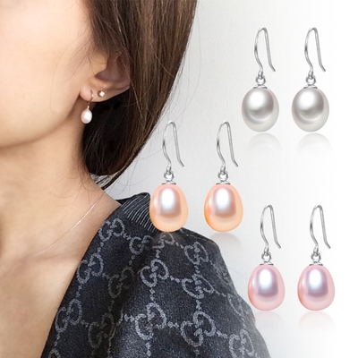 【City Diamond 引雅】天然純白 粉橘 粉紫 黑 珍珠針式貼耳垂掛耳環-多款任選(珠潤月詠系列)
