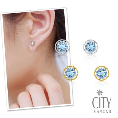 【City Diamond 引雅】『月神眼淚』18K日本鉑金海藍寶石80分圓形鑲邊耳環-雙色任選(東京Yuki系列)