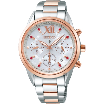 SEIKO 精工 LUKIA 太陽能計時女錶 1212購物節 送禮推薦-銀x雙色/36mm (SSC844J1/V175-0DY0KS)_SK045$17,97886折