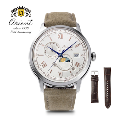 ORIENT 東方錶 SUN&MOON系列 日月相75週年限量機械錶 皮帶款 RA-AK0808S 白色 - 41.5mm