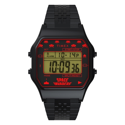 TIMEX 天美時 x T80 x Space Invaders 伸縮錶帶電子錶 (黑 TXTW2V39900)