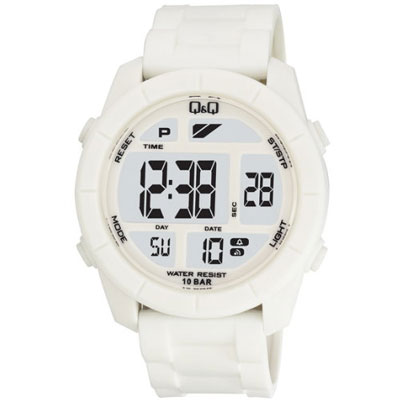 Q&Q 彩色潮流大鏡面多功能電子錶-白/47mm