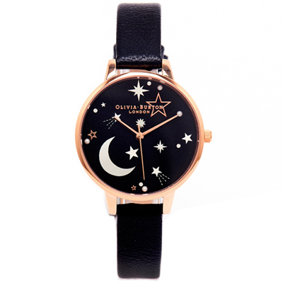 Olivia Burton月語星空皮革手錶與耳環組(OB16GSET40)-黑面/34mm$3,410