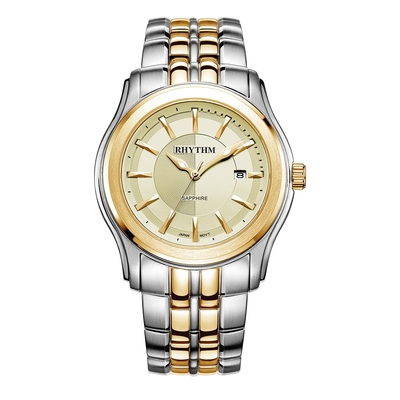RHYTHM日本麗聲 簡單雙色風格日期顯示窗格石英腕錶-金/46mm