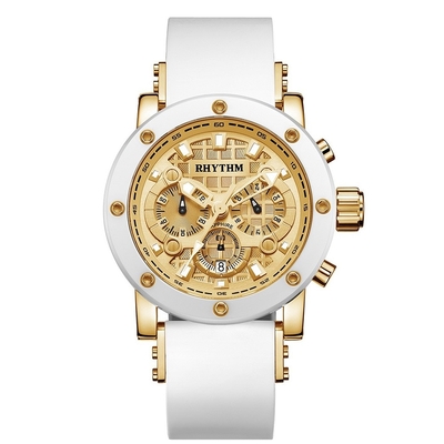 RHYTHM日本麗聲 時空旅行運動款三眼設計石英腕錶-金/50mm