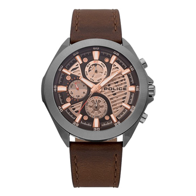 POLICE時光迴紋時尚三眼腕錶-棕X灰(15654JSU-04)/47mm