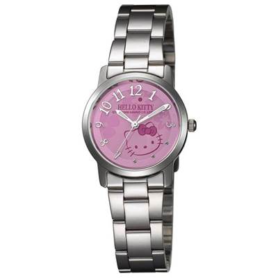 HELLO KITTY 凱蒂貓愛戀經典造型手錶-桃紅x銀/35mm