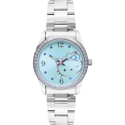Hello Kitty 凱蒂貓 時尚大三針晶鑽女錶-藍x銀/36mm LK691LWNA 週年慶狂歡 送禮推薦