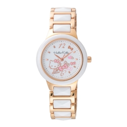 Hello Kitty 浪漫甜心陶瓷腕錶-玫瑰金X白-LK706LRWW-32mm