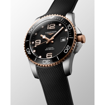 LONGINES 浪琴 深海征服者浪鬼陶瓷潛水機械錶 年終送禮-黑x玫瑰金/41mm L3.781.3.58.9