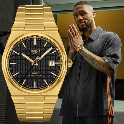 TISSOT 天梭 PRX Powermatic 80 Damian Lillard 聯名腕錶-40mm金色 T1374073305100$26,900