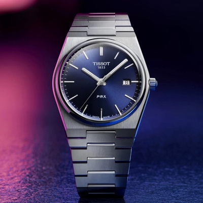 TISSOT 天梭 官方授權 PRX 系列 70年代復刻石英錶 1212購物節 送禮推薦-銀x藍/40mm T1374101104100$11,070
