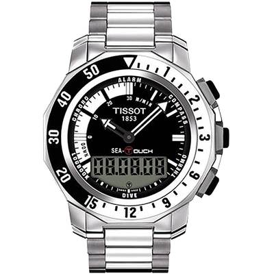 TISSOT 天梭 官方授權 SEA-TOUCH 怒海潛將觸控潛水鍊帶錶 雙12購物節 送禮首選-黑/44mm T0264201105100$29,22583折