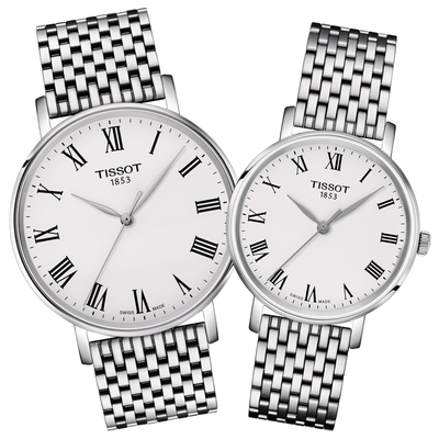 TISSOT天梭 官方授權 EVERYTIME 簡約經典對錶 聖誕節 禮物 送禮 / T1434101103300+T1432101103300$13,85583折