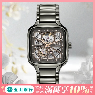 Rado 雷達表 True Square 真我 鑽石粉末質感錶盤 高科技陶瓷 方形鏤空機械錶 R05 R27073722$103,100