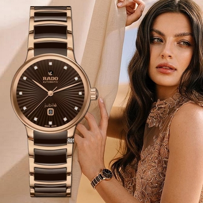RADO 雷達表 廣告款 Centrix 晶萃真鑽自動錶 巧克力陶瓷玫瑰金30.5㎜ R01 (R30019732)$77,850
