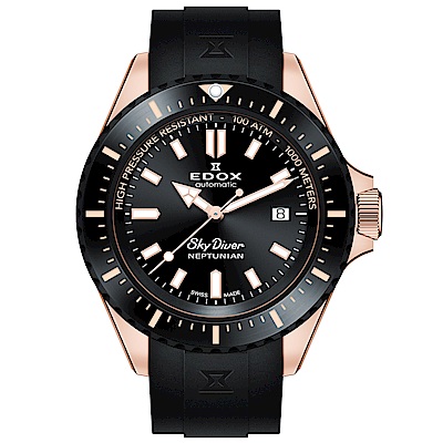 EDOX SkyDiver 海神波賽頓 1000米潛水機械錶 1212購物節 送禮推薦-黑x玫瑰金(E80120.37RNNCA.NIR)$40,29085折