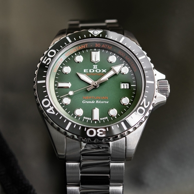 EDOX Neptunian 海神 68H超動能300米潛水機械錶 週年慶狂歡 送禮推薦-綠/42mm E80801.3VM.VDN$47,43085折