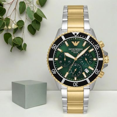 EMPORIO ARMANI 亞曼尼 官方授權 Diver都會菁英綠面潛水錶 銀色不鏽鋼(AR11500)43mm$10,41185折