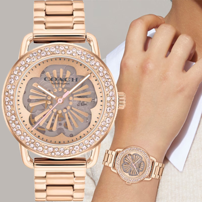 COACH 晶鑽山茶花雙鏤空機械女錶 週年慶狂歡 送禮推薦-37mm CO14504367$10,91288折