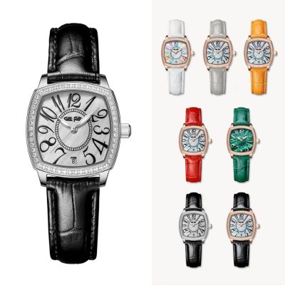 Folli Follie 30毫米 方形 酒桶 誥石錶圈 珍珠母貝錶盤 日期顯示 鱷魚壓紋真皮腕錶(多款任選)$1,5602折