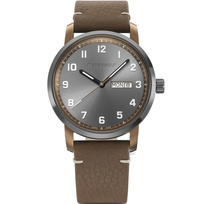 WENGER / Attitude 簡約紳士 復古百搭 日期 防水 真皮手錶-灰x咖啡/42mm$7,310