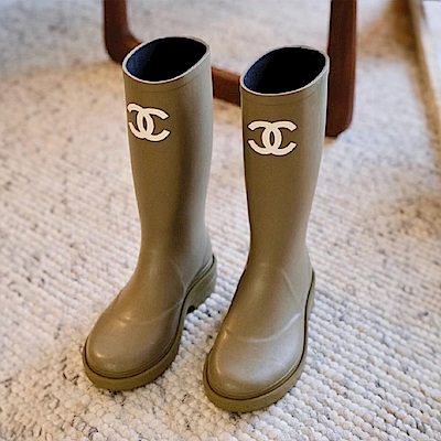 CHANEL爆款雨鞋 / 雙C LOGO中高筒雨靴(橄欖綠)$51,08689折