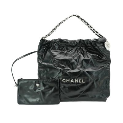 Chanel 香奈兒 22 銀logo中號肩背包(AS3261-黑)