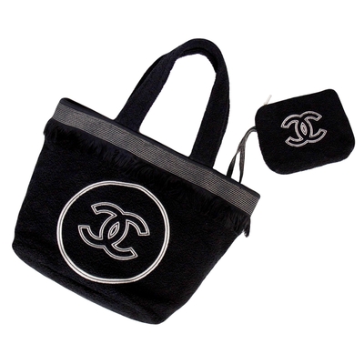 CHANEL 經典雙C 棉質輕量 旅行包/托特包 (黑色)$44,50089折