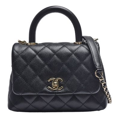 CHANEL 經典COCO HANDLE菱格縫線粒紋牛皮金鍊手提/斜背包(迷你-黑色)$222,32289折