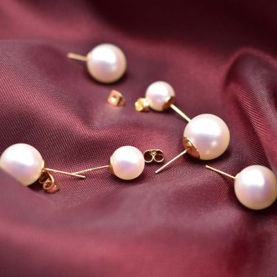 天然珍珠耳環正圓日本粉光珍珠款$84085折