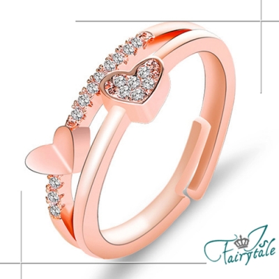 iSFairytale伊飾童話 擁抱愛心 韓風水鑽彈性開口戒指 玫瑰金$96