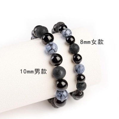 【水星記】天然火山岩雪花黑曜石避邪鎮宅情侶手鍊(40107035)