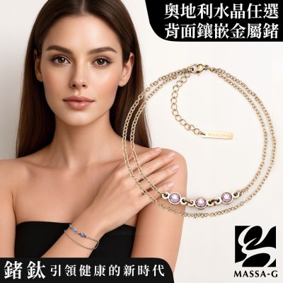 MASSA-G【Make A Wish】祈願金屬鍺錠玫瑰金雙層水晶鋼手鍊/腳鍊(3個金屬鍺)