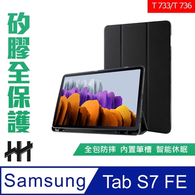 【HH】Samsung Galaxy Tab S7 FE (T733/T736)(12.4吋) 矽膠防摔智能休眠平板皮套(黑色)$4329折