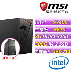 微星平台 賽揚 Celeron 雙核心{紅土大陸}文書機(G7400/H610/8G D4/500G)$10,550