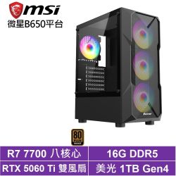 {紫光聖虎} 微星平台 R7八核 RTX 5060 Ti 16G VENTUS 2X PLUS 電競機(R7-7700/B650/32G D5/1TB/650W)$35,990