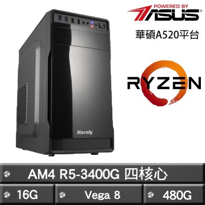 ASUS華碩 A520平台【進化魔君】R5-3400G四核超值文書效能主機(16G/480G)$10,340$10,999