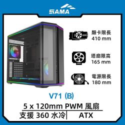 SAMA 先馬 V71 ATX 電腦機殼(黑色)