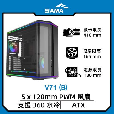 SAMA 先馬 V71 ATX 電腦機殼(黑色)$2,717$2,890