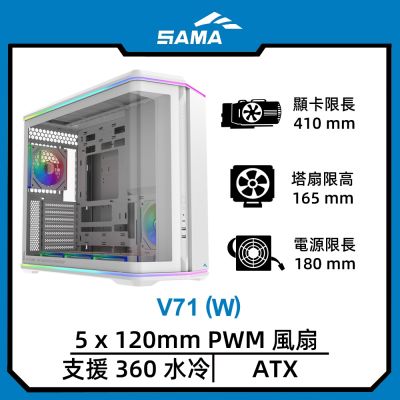 SAMA 先馬 V71 ATX 電腦機殼(白色)$2,811$2,990