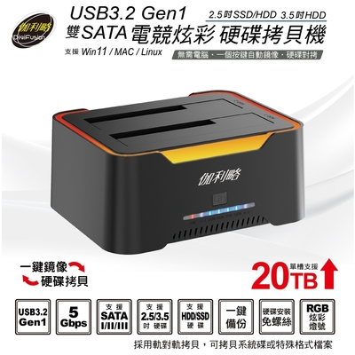 伽利略 USB3.2 Gen1 雙SATA 2.5/3.5 電競炫彩 硬碟拷貝機(2535RC-U5)$1,081$1,150