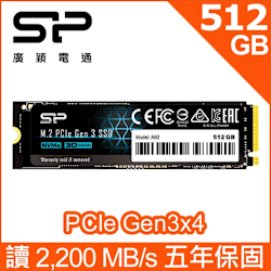 SP廣穎 P34A60 1TB NVMe Gen3x4 PCIe SSD 固態硬碟$5,169