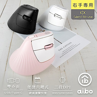 aibo 2.4G無線 人體工學直立式靜音滑鼠(USB/Type-C雙介面)