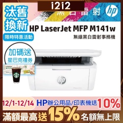 HP LaserJet M141w 黑白雷射多功能印表機 (7MD74A)_福利品$4,450