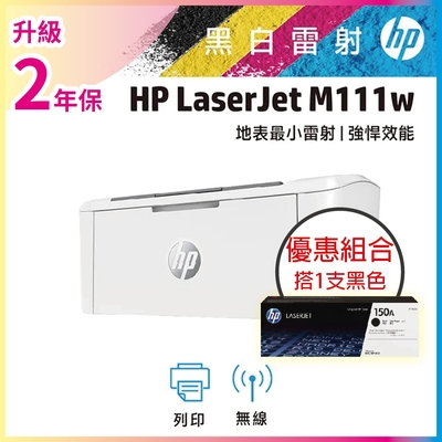 HP LaserJet M111w 黑白雷射無線印表機 (7MD68A)+HP W1500A(150A) 黑色 原廠碳粉匣《超值組升級2年保固》$4,883