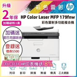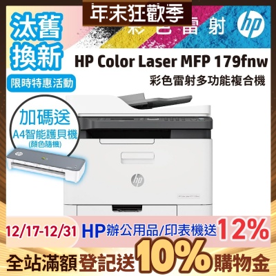 HP Color Laser MFP 179fnw 彩色雷射複合機(取代M183fw)《加碼再送咖啡券+登錄送500禮券》$13,990