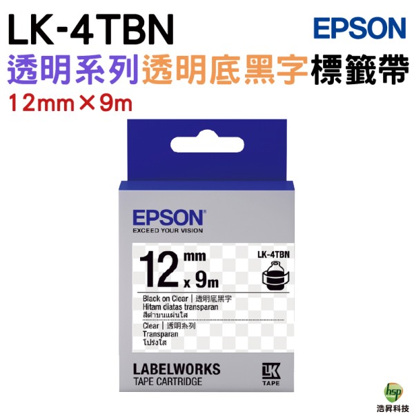 - 商店EPSON LK-4TBN C53S654408 透明系列透明底黑字標籤帶 寬度12mm$3995