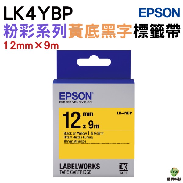 - 商店EPSON LK-4YBP 粉彩系列 黃底黑字 原廠標籤帶 12mm$3995