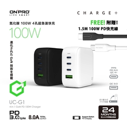 ONPRO UC-G1 100W GaN 氮化鎵4孔PD快充充電器【送100W快充線】